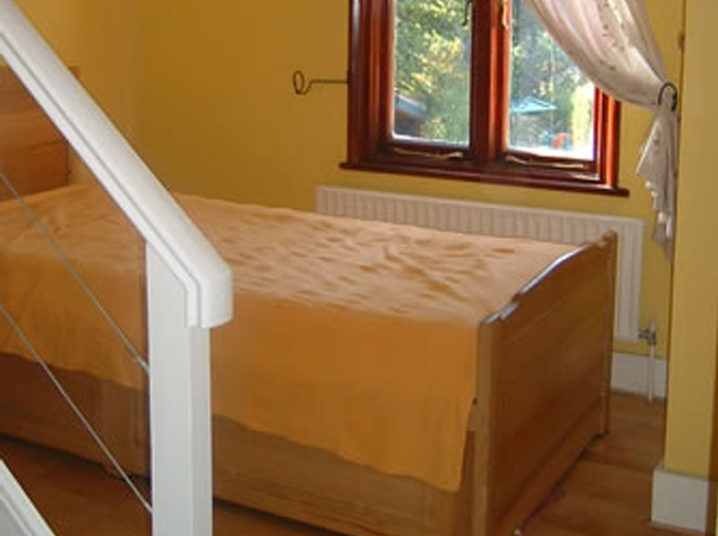 Bathroom is downstairs, steep transverse staircase mid property across the cottage